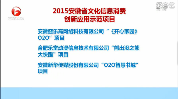 由省委宣傳部牽頭,安徽新媒體(tǐ)集團、安徽文(wén)化(huà)産業(yè)電(diàn)子(zǐ)商務聯盟共同組織開(kāi)展☆的(de)第一(yī)屆(2015)安徽省文(wén)化(huà)信息消費(fèi)創新應用(yòng)示範項目和(hé)互聯網文(wén)化(huà)産業(yè)↑年(nián)度人(rén)物(wù)評選活動結果出爐。合肥象山東坡動漫有限公司《熊出沒之熊大(dà)快(kuài)跑》榮獲2015安徽省文(wén)化(huà)信息消費(fèi)創♦新應用(yòng)示範項目的(de)稱号,合肥象山東坡動漫有限公司總裁芮阿骥榮獲2015安徽互聯網文(wén)化(huà)産業(yè)年(nΩián)度人(rén)物(wù)稱号。
