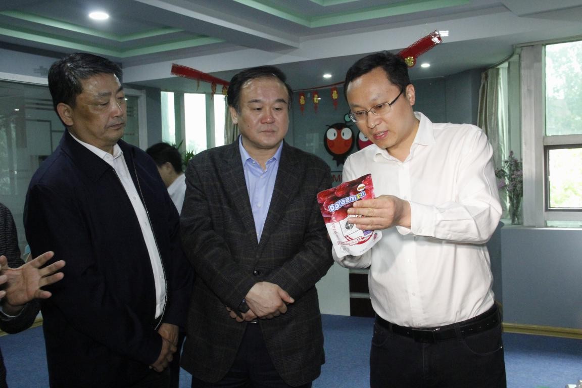 (樂(yuè)堂集團總裁芮阿骥向韓主席等一(yī)行(xíng)領導介紹旗下(xià)可(kě)美(měi)滋零食品牌)