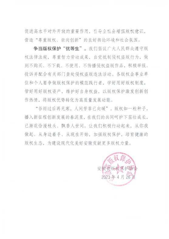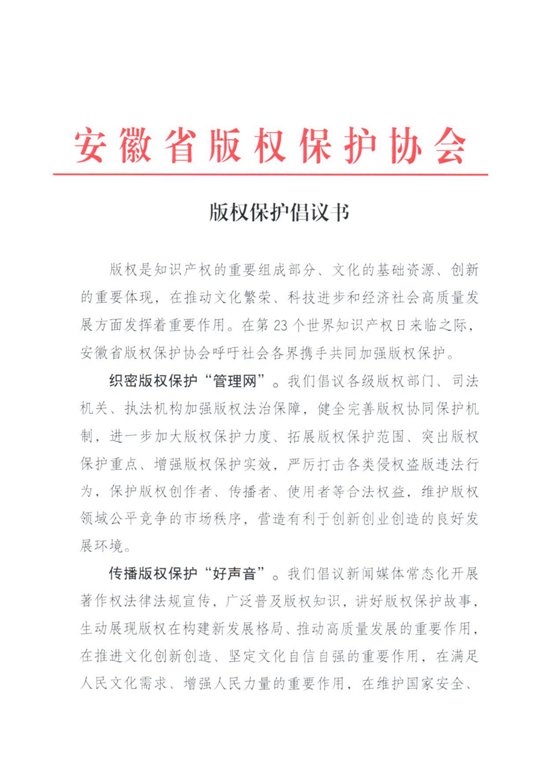 安徽省版權保護協會(huì)發布版權保護倡議(yì)書(shū)